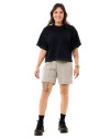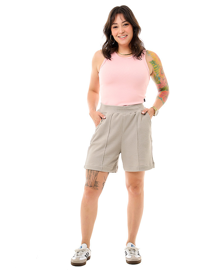 Com modelagem reta e cintura alta, esta bermuda oferece um caimento confortável e versátil. O cós elástico ajustável garante praticidade e um ajuste perfeito ao corpo, enquanto os bolsos laterais funcionais agregam funcionalidade ao design, permitindo que você carregue seus itens essenciais com facilidade.