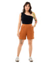 Com modelagem reta e cintura alta, esta bermuda oferece um caimento confortável e versátil. O cós elástico ajustável garante praticidade e um ajuste perfeito ao corpo, enquanto os bolsos laterais funcionais agregam funcionalidade ao design, permitindo que você carregue seus itens essenciais com facilidade.