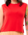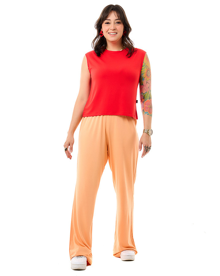 Com modelagem sem mangas, corte tradicional e gola careca, essa peça equilibra a vibe esportiva com um visual moderno e despojado. O tom vermelho vibrante traz personalidade, sendo versátil para combinações que vão do básico ao sofisticado, sem esforço.