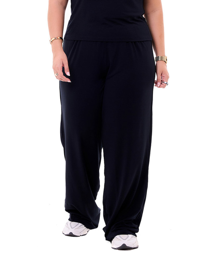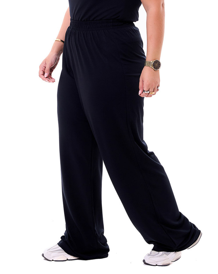 Com modelagem ampla e corte reto, esta calça garante um caimento solto e confortável, ideal para quem busca praticidade sem abrir mão do estilo. A cintura com elástico embutido oferece um ajuste prático e confortável ao corpo, adaptando-se perfeitamente a diferentes silhuetas.