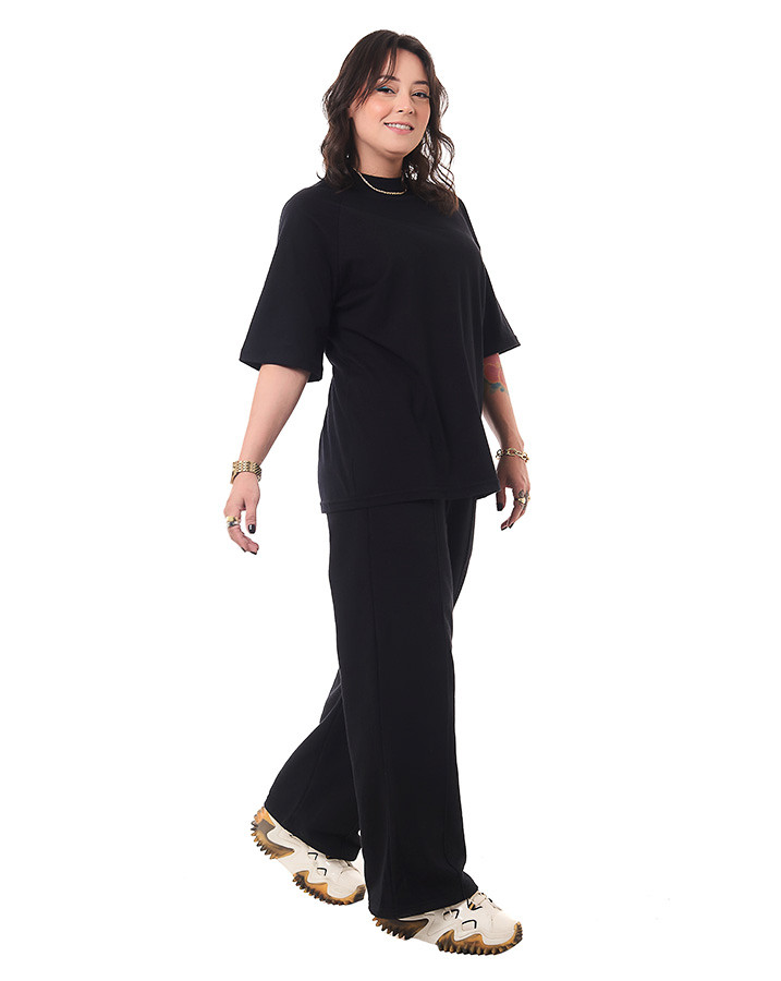 Com elástico e cordão ajustável na cintura, além de nervura no meio da calça para um charme casual adicional, ela proporciona um ajuste perfeito e confortável. Seu corte reto e caimento solto garantem liberdade de movimento sem perder o estilo. Versátil e prática, a Calça Moletom Feminina Reta Preto Knulu é perfeita para diversas ocasiões, seja para um dia relaxante em casa ou para um passeio descontraído.