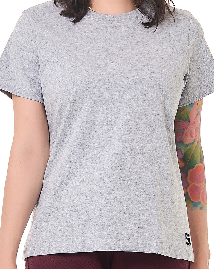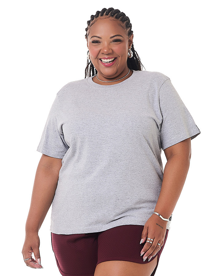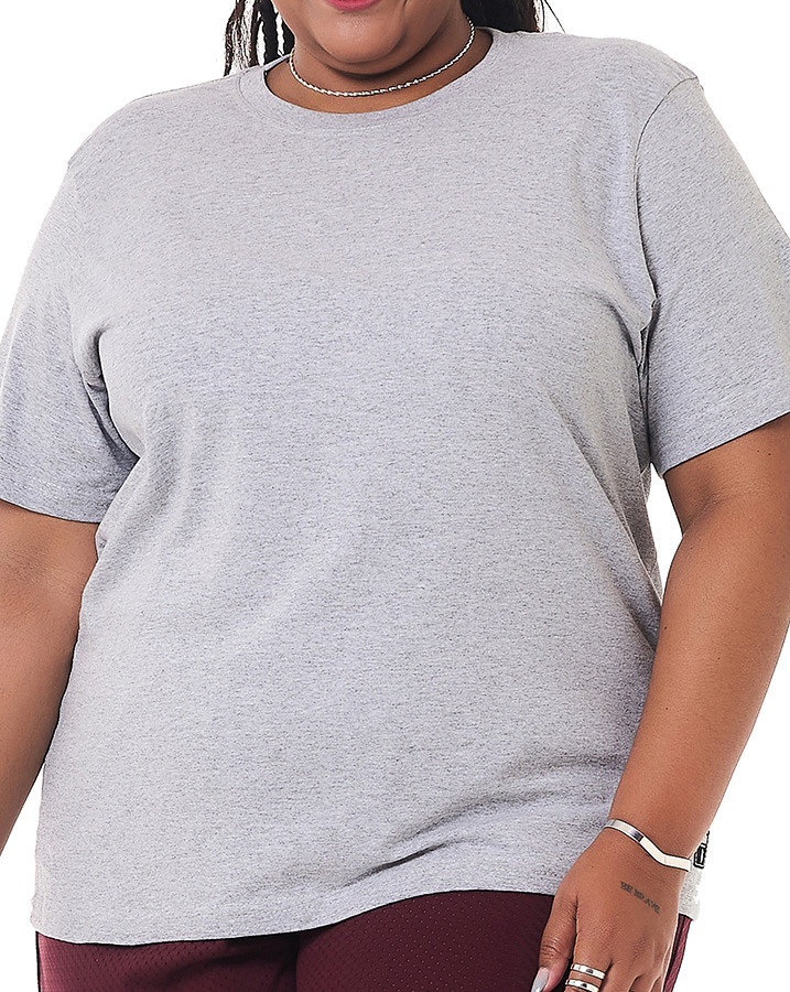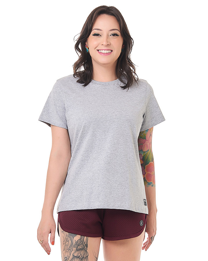 A CAMISETA BÁSICA FEMININA CINZA MESCLA é aquela peça básica que não pode faltar no armário! É uma peça versátil que compõe qualquer look, seja no casual até para uma reunião no trabalho. Confeccionada em malha 30.1 penteada 100% algodão que proporciona conforto e excelente modelagem ao corpo.