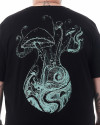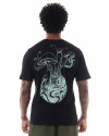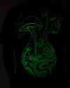 Uma arte surrealista, meticulosamente criada pelo talentoso artista FAO, ganha vida sob a luz. Utilizando uma tinta especial que brilha no escuro, essa estampa cria um efeito surpreendente, transformando esta camiseta em uma verdadeira peça de conversação.