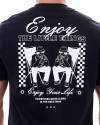 Confeccionada em malha leve e resistente, a peça proporciona toque macio e excelente respirabilidade. O destaque fica para a estampa nas costas com ilustração em estilo monocromático e a mensagem “Enjoy the little things”, reforçando um visual urbano com apelo reflexivo.