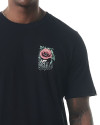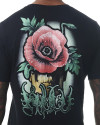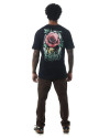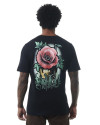 A estampa traz uma flor vibrante sobre uma caveira, criando um visual de impacto com apelo artístico e simbólico. A composição gráfica se destaca nas costas da peça e se repete em menor escala na frente, equilibrando presença visual e estilo. Conta ainda com pequena etiqueta aplicada na lateral, reforçando o acabamento autêntico da marca.