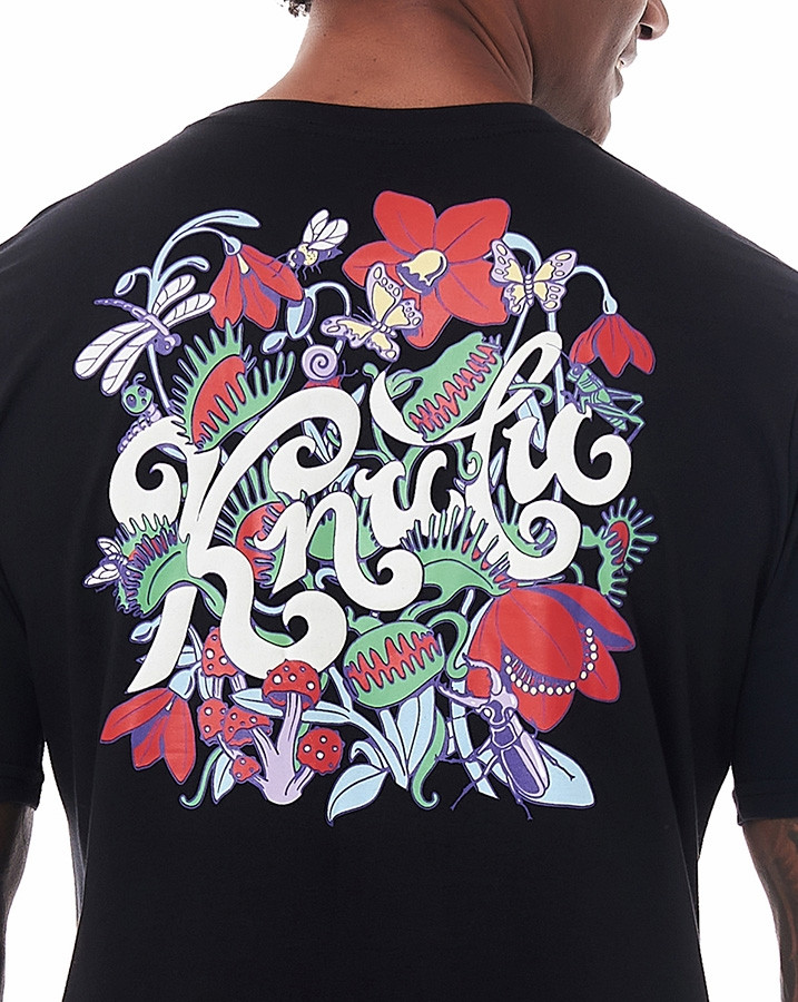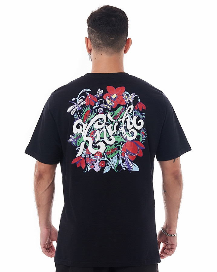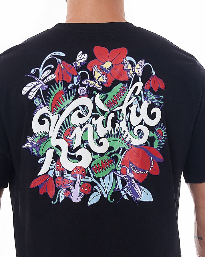 O diferencial desta camiseta está na parte de trás, onde um silk especial exibe um jardim, a logo da Knulu leva uma tinta especial que cria um relevo através de efeito tridimensional , criando uma sensação de estar em meio à natureza. É um detalhe que torna esta camiseta única e autêntica.