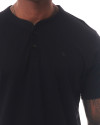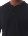 Seu corte tradicional oferece um ajuste confortável e versátil, adequado para diversas ocasiões. O destaque fica por conta da gola henley England, caracterizada por sua abertura em forma de V e dois botões pretos que adicionam um toque de sofisticação ao visual. Além disso, a aplicação da logo "k" complementa o design exclusivo da peça.