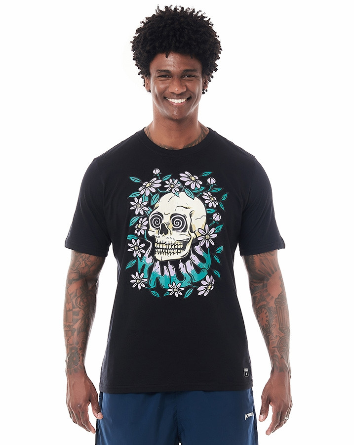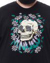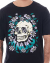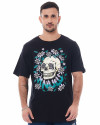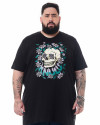 Com um corte tradicional, gola careca e mangas curtas, esta camiseta proporciona conforto e estilo em um único pacote. À frente da camiseta, uma estampa hipnotizante de uma caveira com olhos cativantes, cercada por flores que fluem harmoniosamente, com a logo da Knulu incorporada como se fizesse parte do jardim. Essa estampa única e intrigante é meticulosamente prensada para garantir durabilidade e um toque suave e exclusivo.
