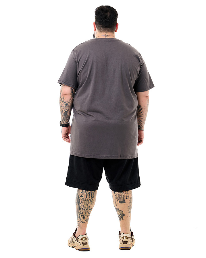 Produzida em malha de toque macio, a peça proporciona respirabilidade e resistência, mantendo o visual sempre alinhado. A estampa central em branco traz elementos simbólicos com traços urbanos e estética inspirada no estilo hustle, reforçando a identidade visual da marca.