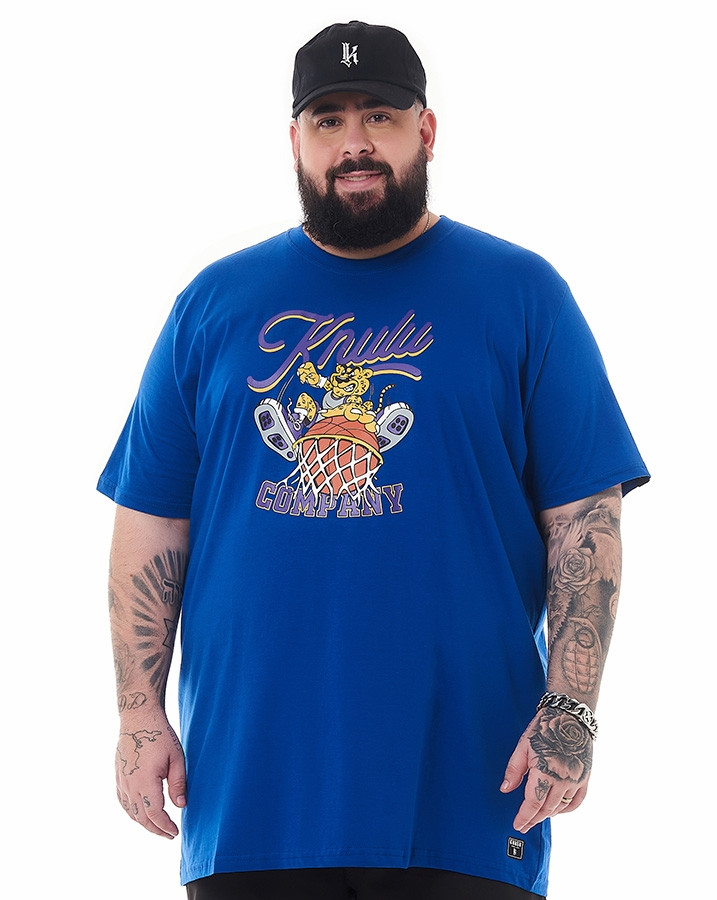 Com um corte tradicional, gola careca e mangas curtas, esta camiseta é uma escolha versátil para qualquer dia. Mas o que a torna verdadeiramente especial é a estampa frontal. Uma impressionante imagem de uma onça-pintada fazendo uma enterrada em uma cesta de basquete é o destaque, combinando poder e criatividade de forma única.