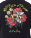 Seu design é marcado por uma estampa em silk screen na frente, com a frase "Killer Bees" em amarelo, enquanto na parte de trás, a mesma frase em destaque, acompanhada por flores vermelhas e amarelas, além de uma abelha sobreposta. Um detalhe é a inscrição "golden honey" abaixo da composição, agregando um toque especial à peça.