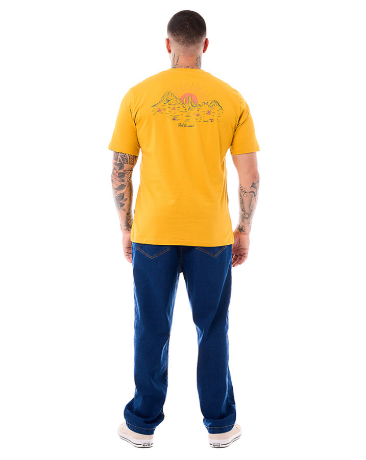 A Camiseta Classic Sunset Amarelo Ouro Knulu é a união entre cor vibrante e identidade visual marcante. Com corte tradicional e gola careca, oferece um caimento confortável que se adapta bem a diferentes composições.