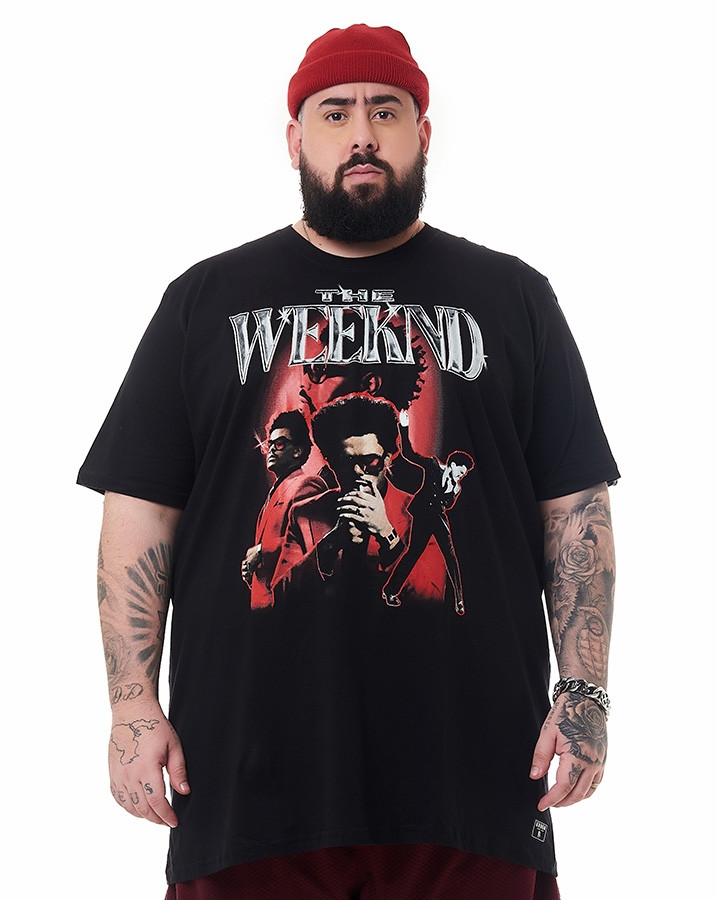 O destaque desta peça está na estampa frontal do artista "The Weeknd". Com tons de vermelho que capturam sua essência única, essa estampa adiciona um toque de estilo autêntico ao seu look. Se você é fã de música e deseja expressar sua admiração pelo "The Weeknd" de forma elegante, esta camiseta é a escolha ideal.