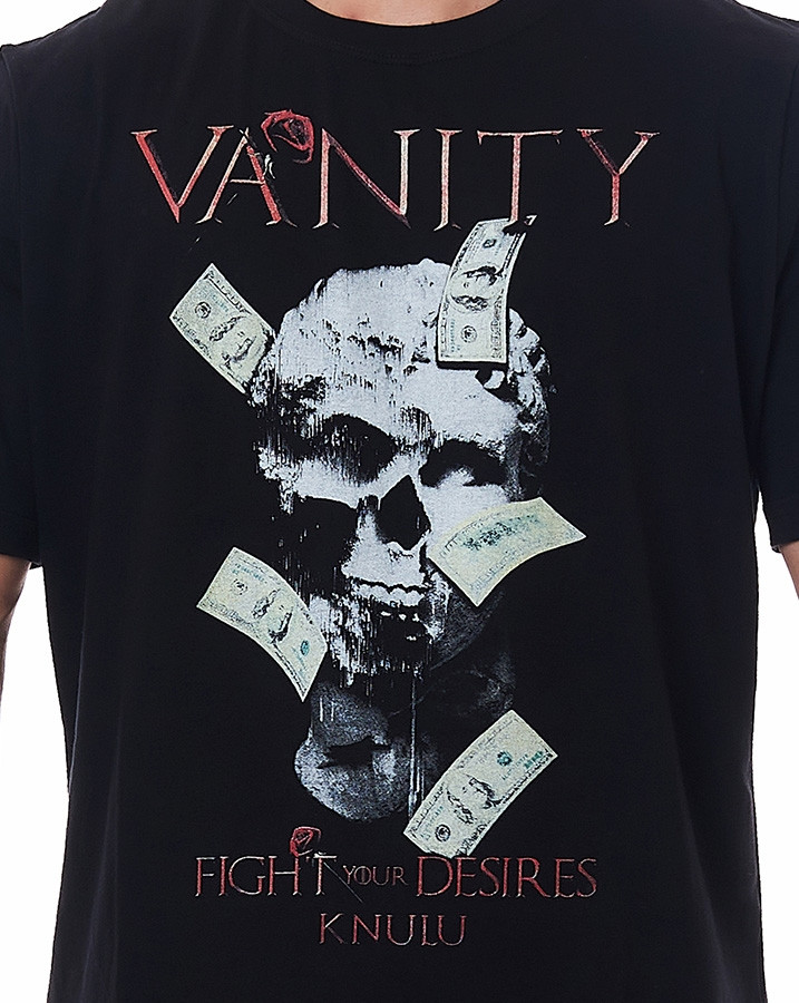 A Camiseta Classic Vanity Preto Knulu é a escolha perfeita para quem deseja adicionar um toque de originalidade e personalidade ao seu guarda-roupa.