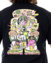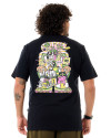 A malha leve e resistente proporciona conforto ao toque e durabilidade no uso cotidiano. O destaque vai para a estampa nas costas, que apresenta uma ilustração multicolorida com personagens e elementos urbanos, assinada com o logo Knulu em traço estilizado. Na parte frontal, o mesmo conceito aparece de forma reduzida, mantendo a identidade visual da peça.