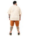 Camiseta Oversized Boxy Shoulder Line Off White Knulu: Conforto e estilo reunidos. Feita em malha premium (50% algodão, 50% poliéster), esta camiseta off white destaca-se pelas costuras contrastantes em preto na gola, mangas, ombros e barra.