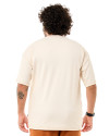 Na cor off white, a camiseta se destaca pelas costuras contrastantes em preto na gola, mangas, ombros e barra, adicionando um toque de sofisticação ao design clean. Sua modelagem oversized com corte amplo, mangas largas e comprimento alongado garante conforto e um visual contemporâneo, ideal para quem busca looks modernos e cheios de identidade.