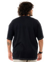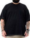 Na cor preta, a camiseta se destaca pelas costuras contrastantes em branco na gola, mangas, ombros e barra, adicionando um toque de sofisticação ao design clean. Sua modelagem oversized, com corte amplo, mangas largas e comprimento alongado, garante conforto e um visual contemporâneo, perfeito para quem deseja criar looks modernos e cheios de identidade.