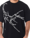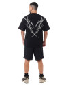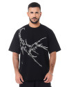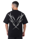 Com seu corte amplo, que oferece um visual exageradamente folgado, sendo mais larga e mais comprida, esta camiseta não só garante conforto duradouro, mas também exala um estilo descontraído e original. Os detalhes tribais em branco, tanto na frente quanto nas costas, acrescentam uma dimensão única ao seu visual.