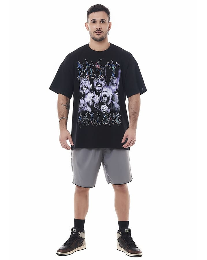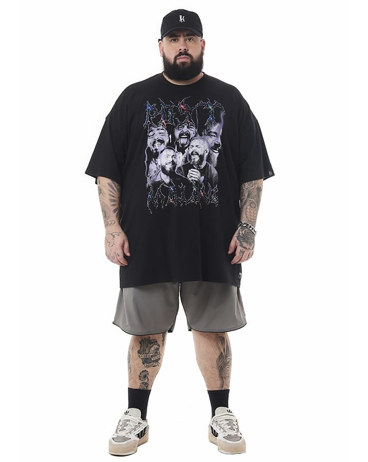 O corte oversized proporciona um visual moderno e liberdade de movimento, enquanto a gola careca a torna versátil. A estampa exclusiva, inspirada no Post Malone, adiciona autenticidade ao estilo.