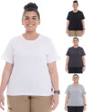 Kit com 4 Camisetas Femininas Básicas Variadas Knulu foi confeccionada com modelagem tradicional e gola careca, lisa sem estampa.