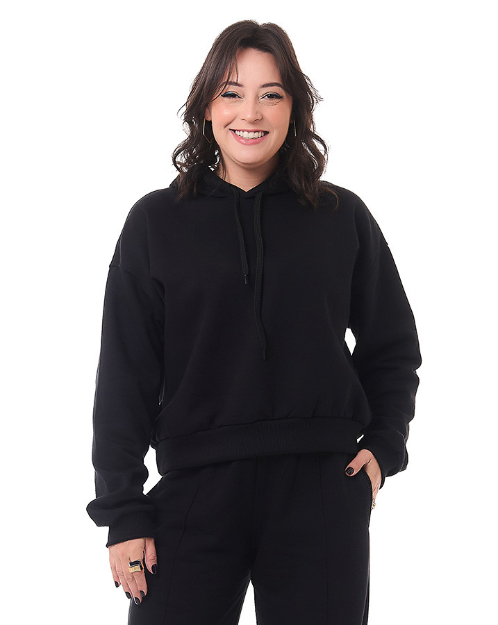 Com mangas longas, ele combina funcionalidade com um design atemporal. Seu corte reto e caimento solto proporcionam liberdade de movimento sem perder o estilo. O capuz ajustável com cordão e o acabamento em ribana na barra e punhos garantem ainda mais conforto ao vestir. Versátil e prático, o Casaco Moletom Feminino Oversized Boxy Preto Knulu é perfeito para diversas ocasiões, seja para um passeio descontraído ou para um compromisso casual.