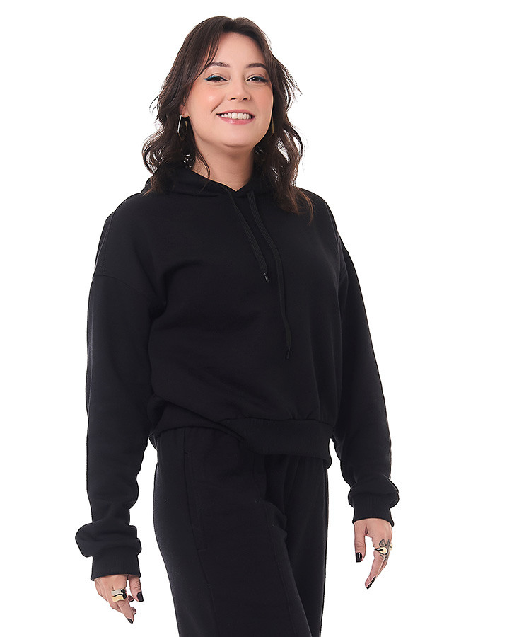 Descubra o Casaco Moletom Feminino Oversized Boxy Preto Knulu, uma peça essencial que une conforto e estilo com perfeição! Feito com moletom flanelado, este casaco oferece o máximo de conforto, ideal para os dias mais frios e para compor looks casuais com um toque de sofisticação.
