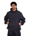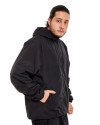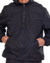 A construção da peça conta com capuz ajustável por cordão, forro em mesh que aumenta a respirabilidade, bolso interno funcional e bolsos laterais com zíper embutido, garantindo praticidade no uso diário.