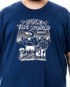 A malha de toque macio proporciona respirabilidade e resistência, mantendo o visual alinhado mesmo após múltiplas lavagens. A estampa em destaque na parte frontal mistura influências de cartazes ilustrados com grafismos de rua, transmitindo atitude com a mensagem "Rule The World".