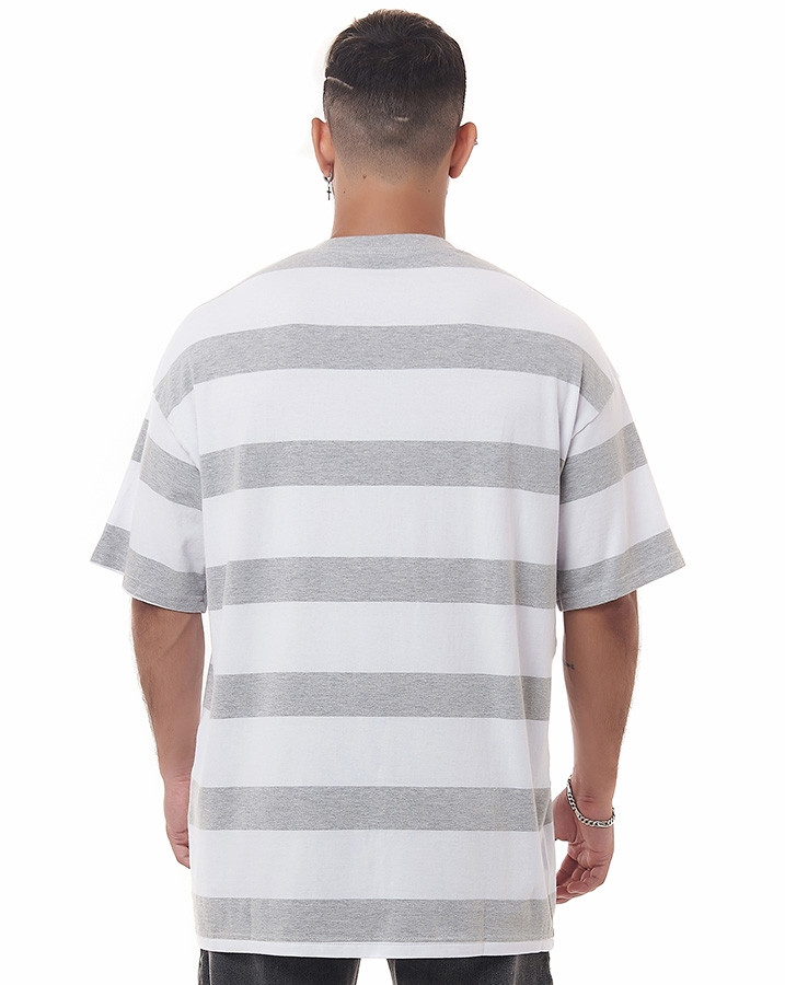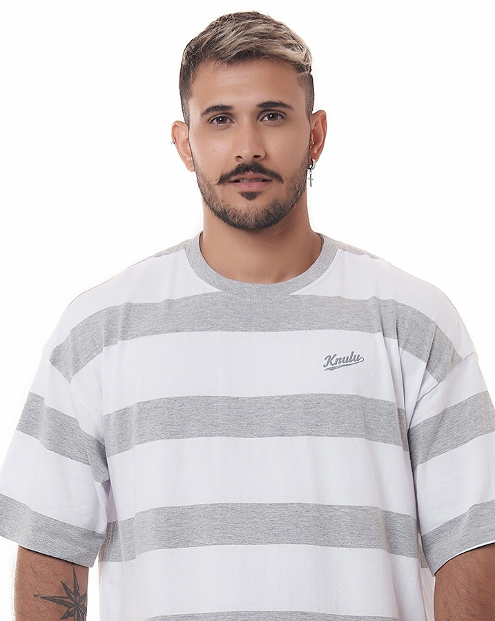 CAMISETA LISTRADA OVERSIZED GREY LINE BRANCO KNULU