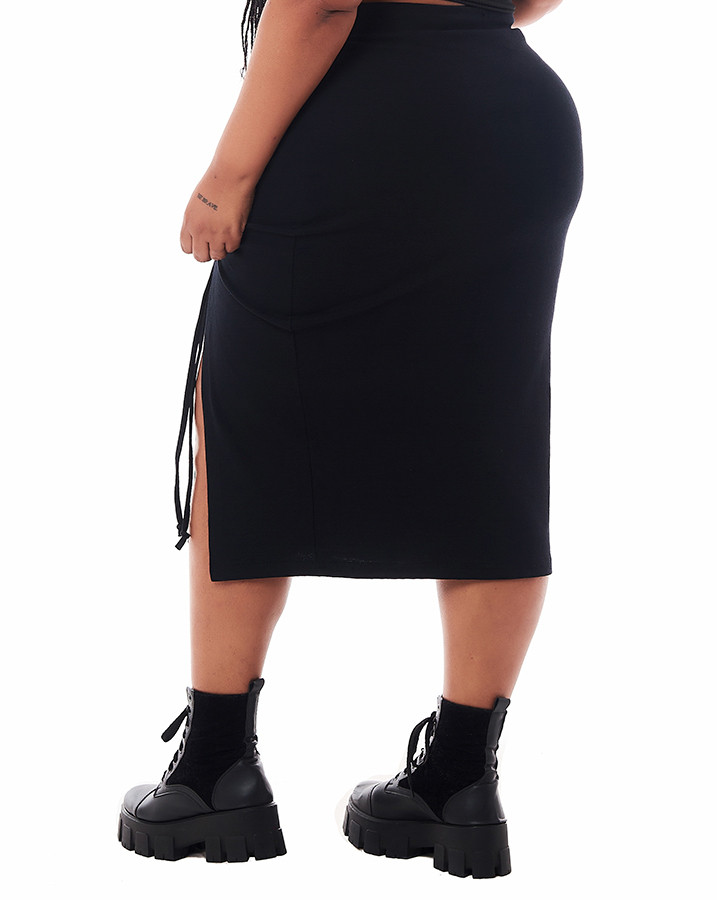 O grande diferencial da Saia Midi Canelada Regulagem é a fenda com regulagem na perna esquerda. Essa característica inovadora dá a você o poder de escolher a altura desejada para a fenda, proporcionando versatilidade ao seu look. Seja para um evento mais formal ou uma ocasião descontraída, adapte a saia conforme a atmosfera do momento.