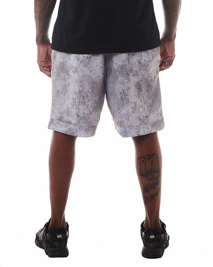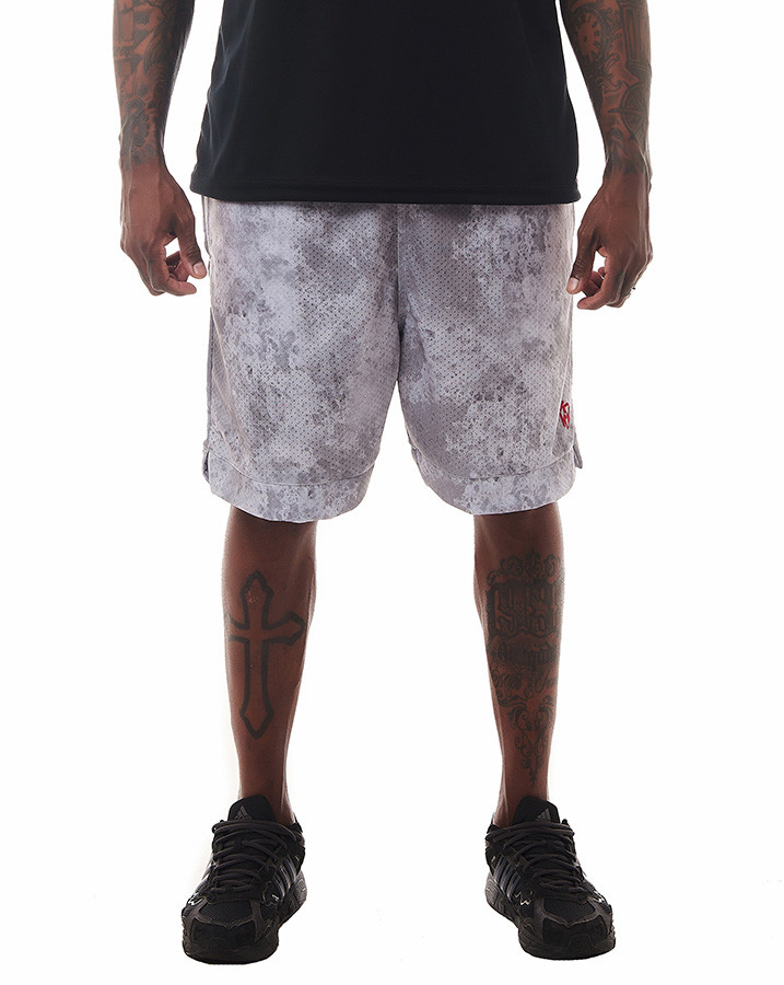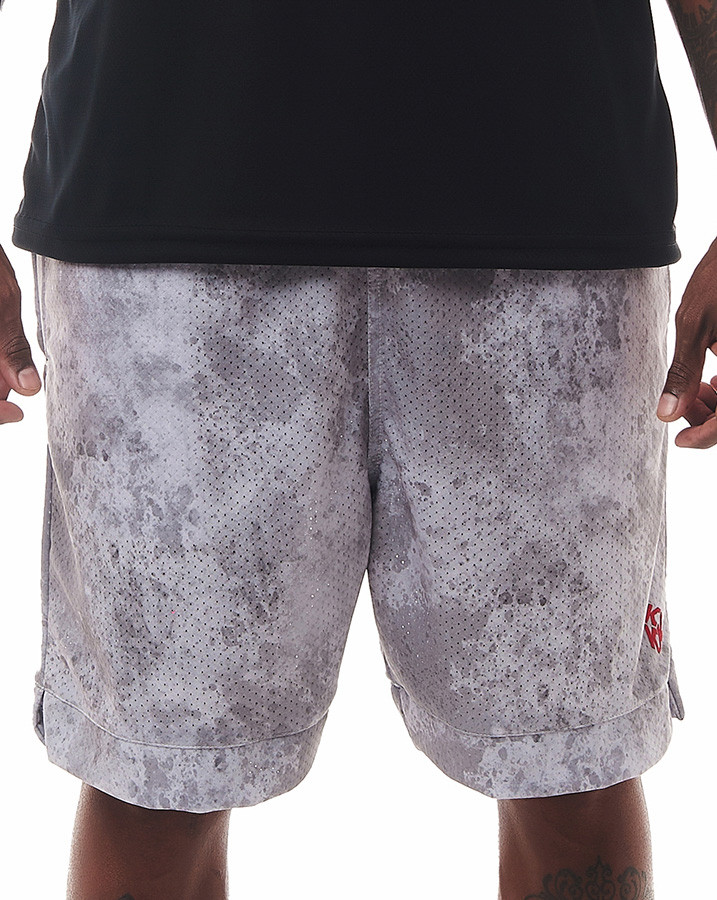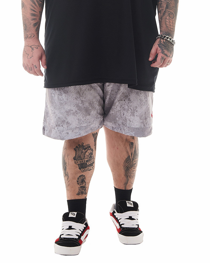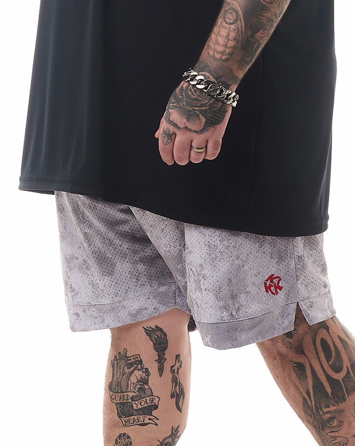Toda a peça possui uma estampa em textura cinza, proporcionando um visual único e contemporâneo. A sutil aplicação vermelha do "k" da Knulu estilizado adiciona um toque de autenticidade e personalidade à bermuda.