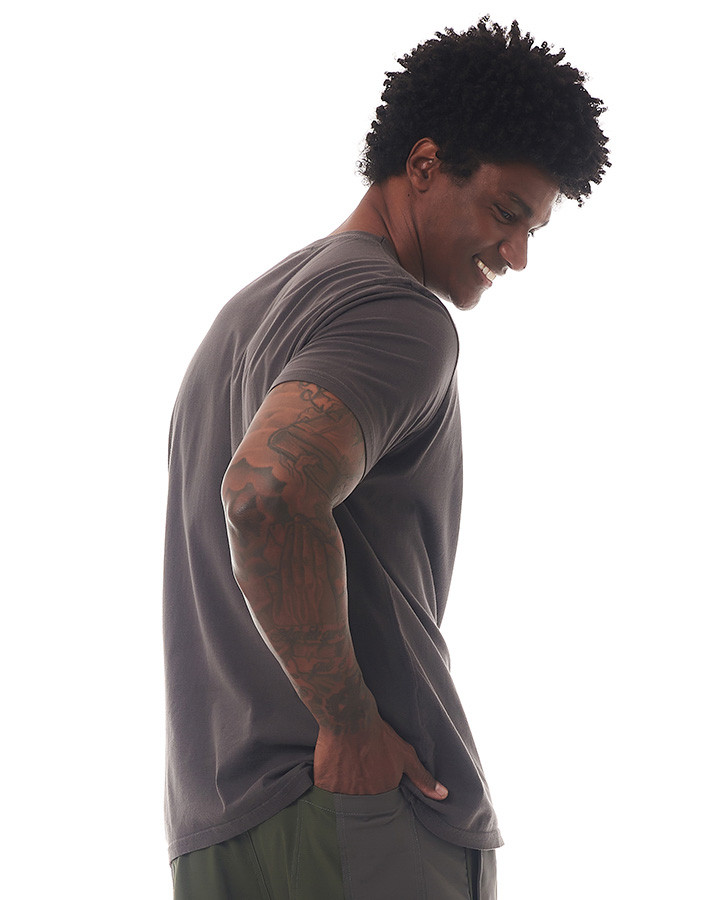 Cada camiseta passa por uma tintura cuidadosa e um processo de abrasão suave em um tambor industrial, proporcionando não apenas um visual único e envelhecido, mas também um toque suave e um aroma agradável.