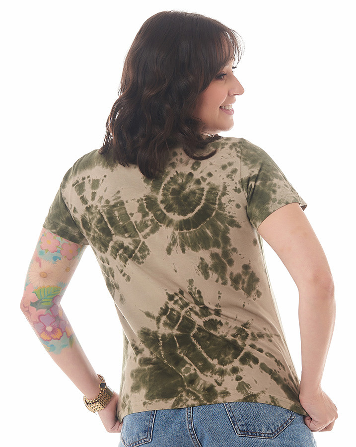 As cores do tie-dye, em verde e bege, evocam uma sensação de natureza e liberdade. Vista-se com autenticidade e destaque-se na multidão com a Camiseta Feminina Tie-Dye Forest Verde Knulu.