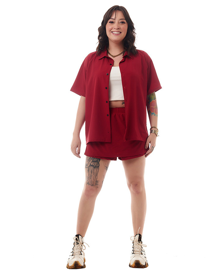 Apresentando uma gola com colarinho e 5 botões, esta camisa adiciona um toque de sofisticação ao seu look casual. Além disso, é a combinação perfeita com o Short Saia Feminino Knulu, criando um conjunto versátil e estiloso para diversas ocasiões.