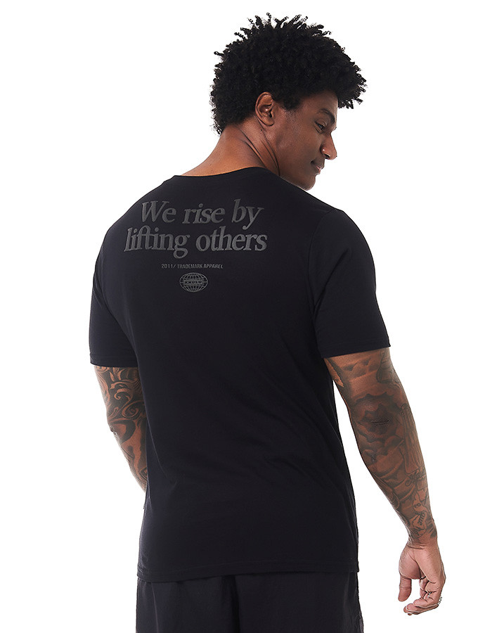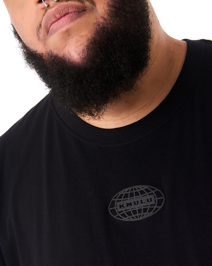 Na frente, o distintivo globo da Knulu é um convite para explorar novos horizontes. Nas costas, uma mensagem inspiradora em verde claro, 'we rise by lifting others', reflete a essência de quem busca elevar-se e elevar os outros.