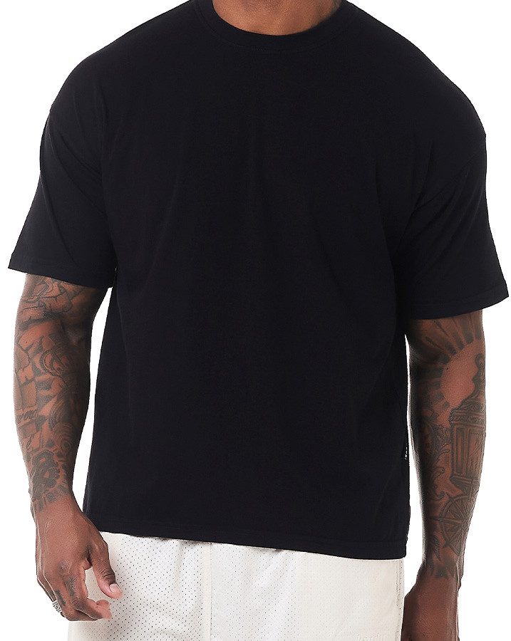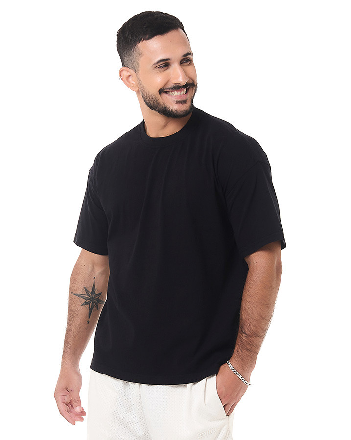 Desperte seu estilo com a Camiseta Oversized Boxy Preto Knulu. Feita com malha de algodão macio e confortável, esta peça apresenta um corte tradicional com um toque moderno. Sua modelagem ampla e mangas largas proporcionam um visual único, enquanto o comprimento ligeiramente mais curto adiciona um toque de estilo urbano.