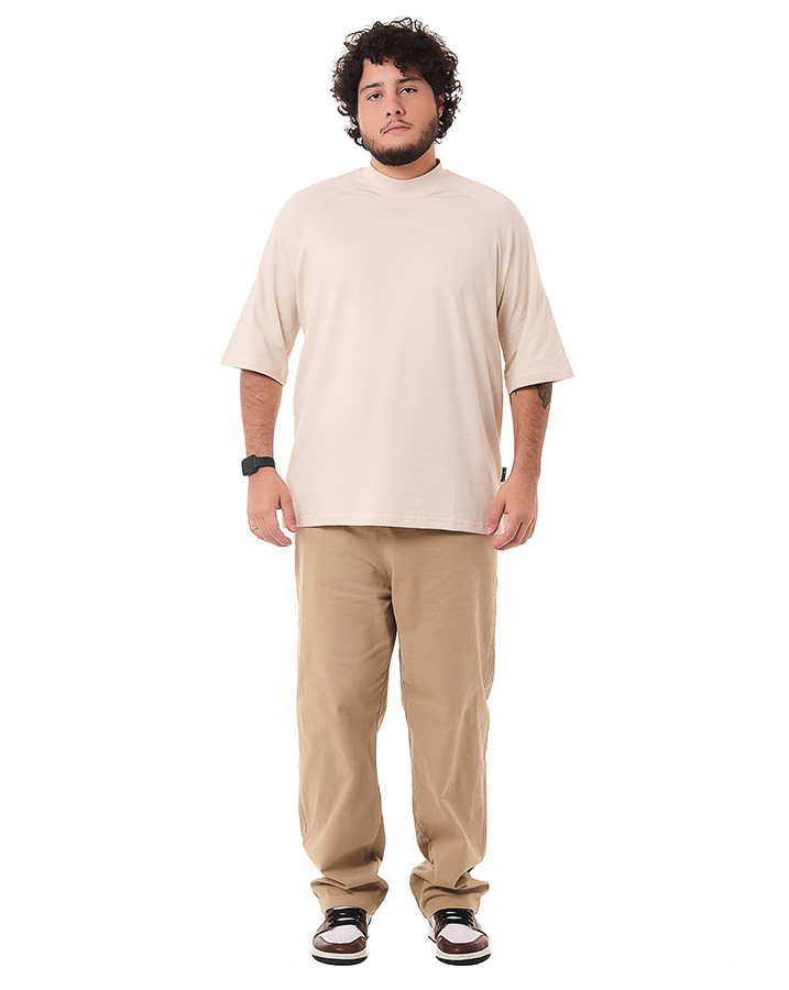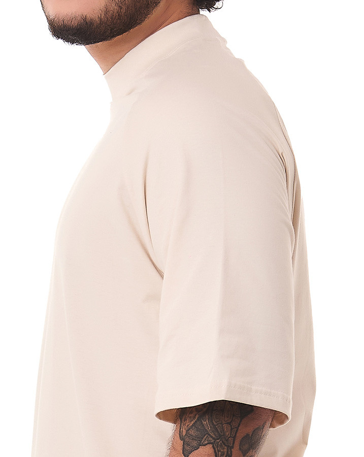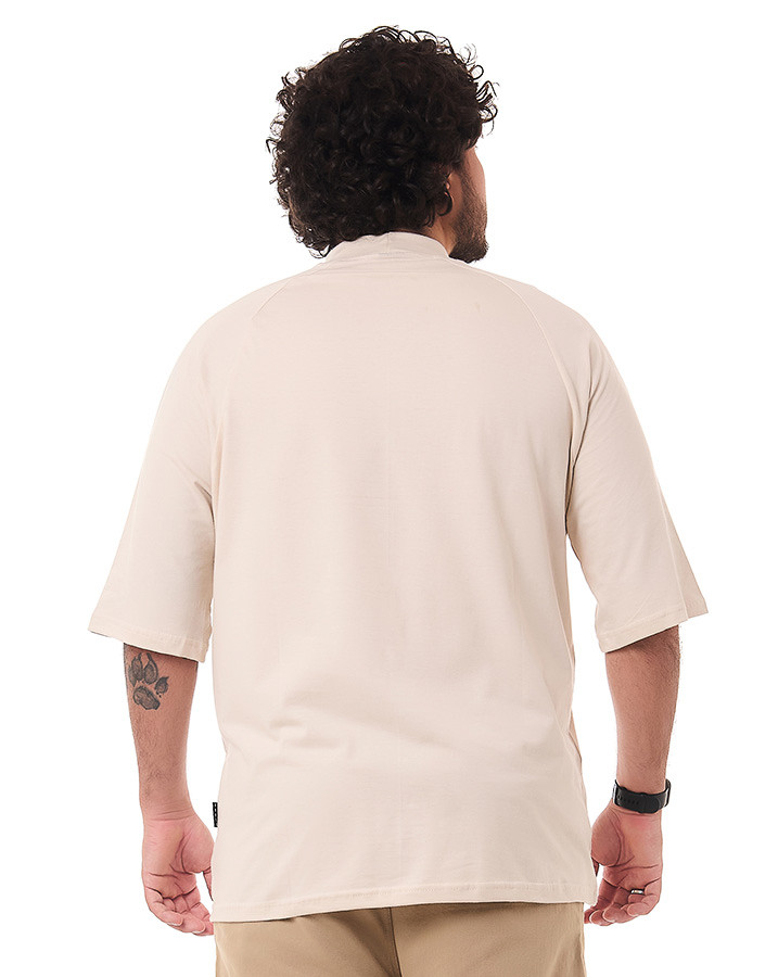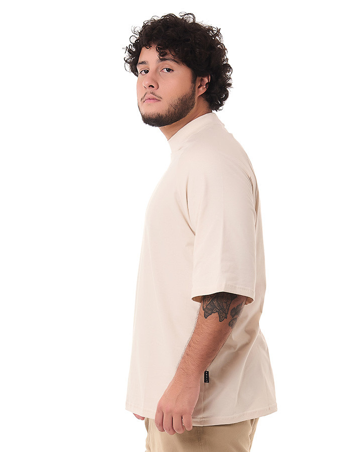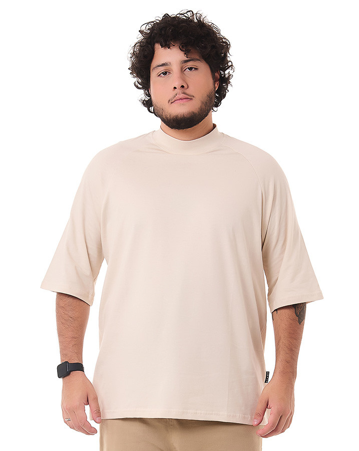 O corte oversized e a manga raglan proporciona um caimento moderno e descolado, garantindo liberdade de movimento e um visual urbano único. Além disso, o destaque fica por conta da gola alta, que confere um toque de sofisticação e personalidade à camiseta.