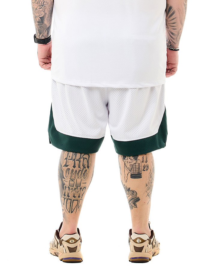 Eleve seu estilo e performance com a Bermuda Dry-Fit Pyramid Branco e Verde Knulu.