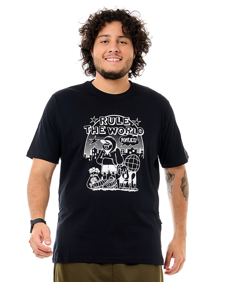 Adicione ao seu guarda-roupa e sinta a diferença que um design único e atenção aos detalhes podem fazer no seu visual. Com a Camiseta Classic Rule The World Preto Knulu, vestir-se bem é uma experiência única.
