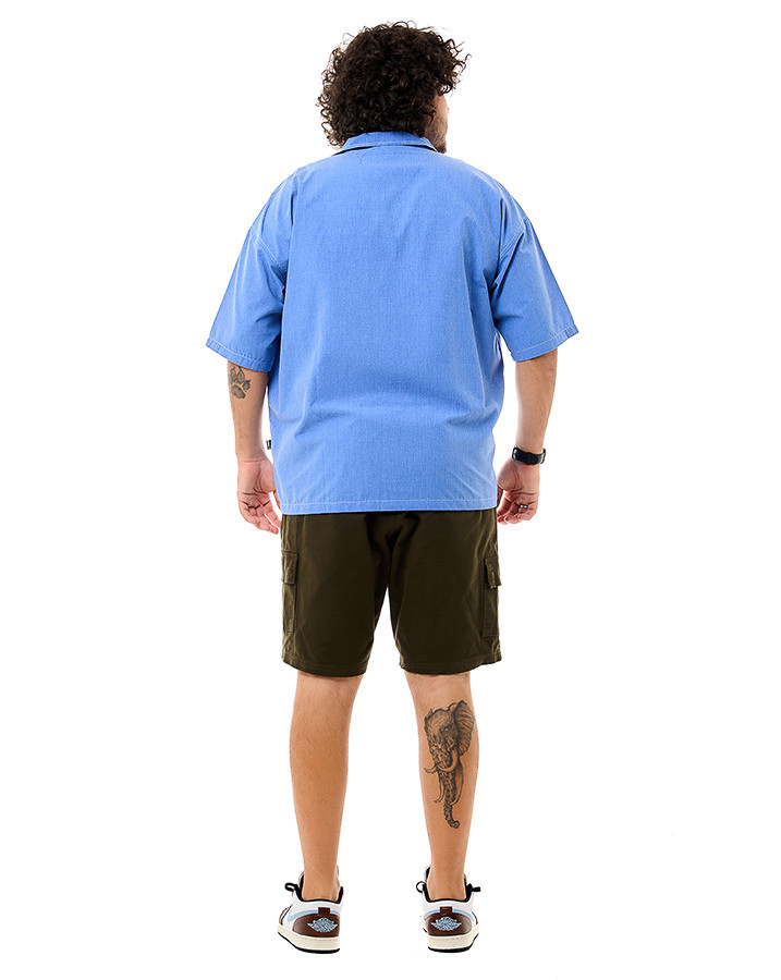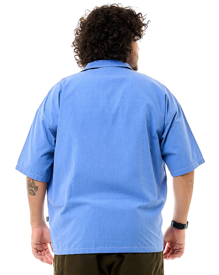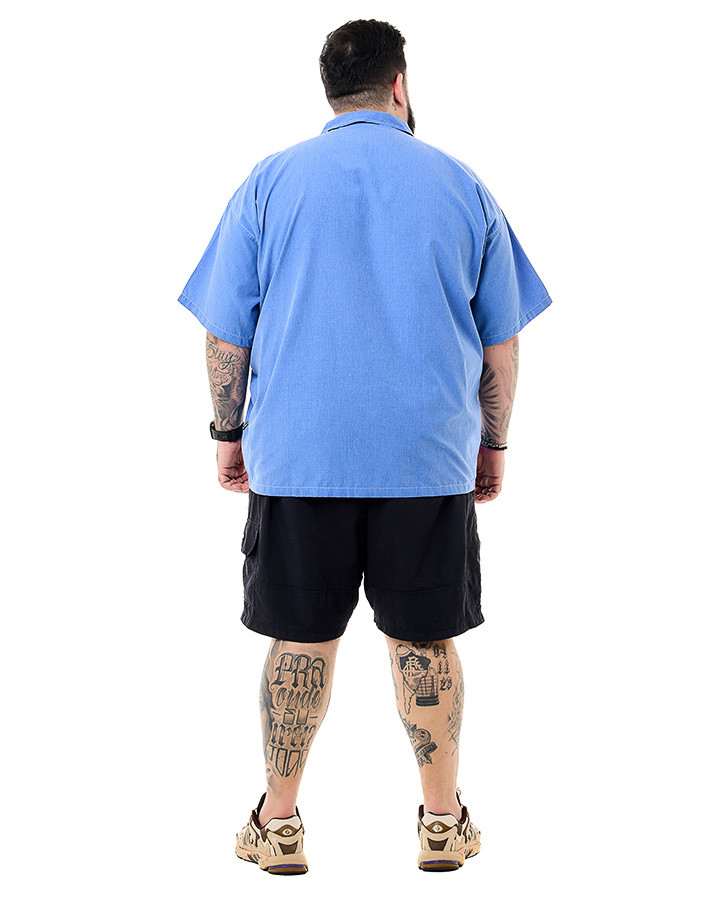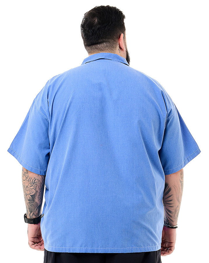Descubra a Camisa Oversized Gola Cubana Angel Azul Jeans Knulu, que une design clássico e visual contemporâneo. Feita em tecido premium (50% algodão e 50% poliéster), ela oferece conforto e um caimento solto graças ao seu corte oversized e gola cubana.