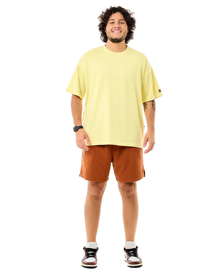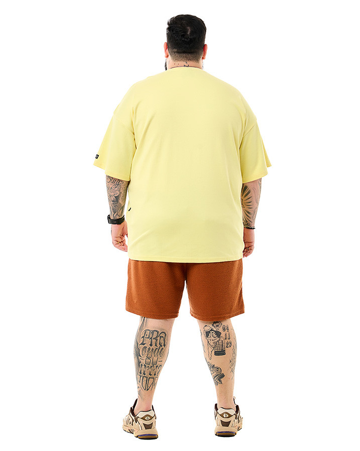 Camiseta Oversized Soft Amarelo Bebê Knulu: Viva a experiência única ao vestir com nossa camiseta oversized em amarelo bebê. Com modelagem ampla e base alongada, ela garante um caimento perfeito sem encolhimento graças ao processo de lavagem especial. Feita em 50% algodão + 50% poliéster, oferece conforto e versatilidade para qualquer ocasião.