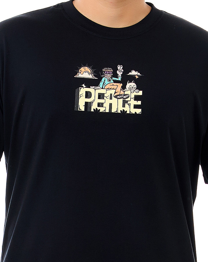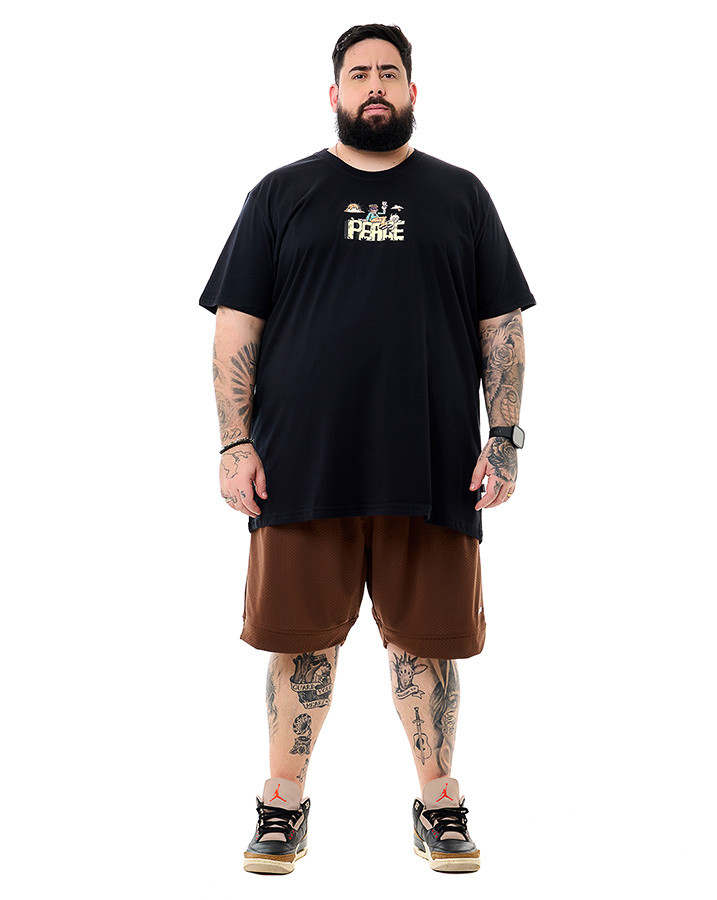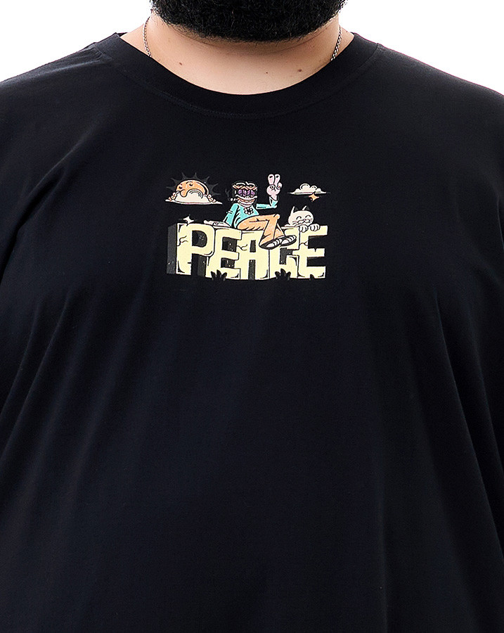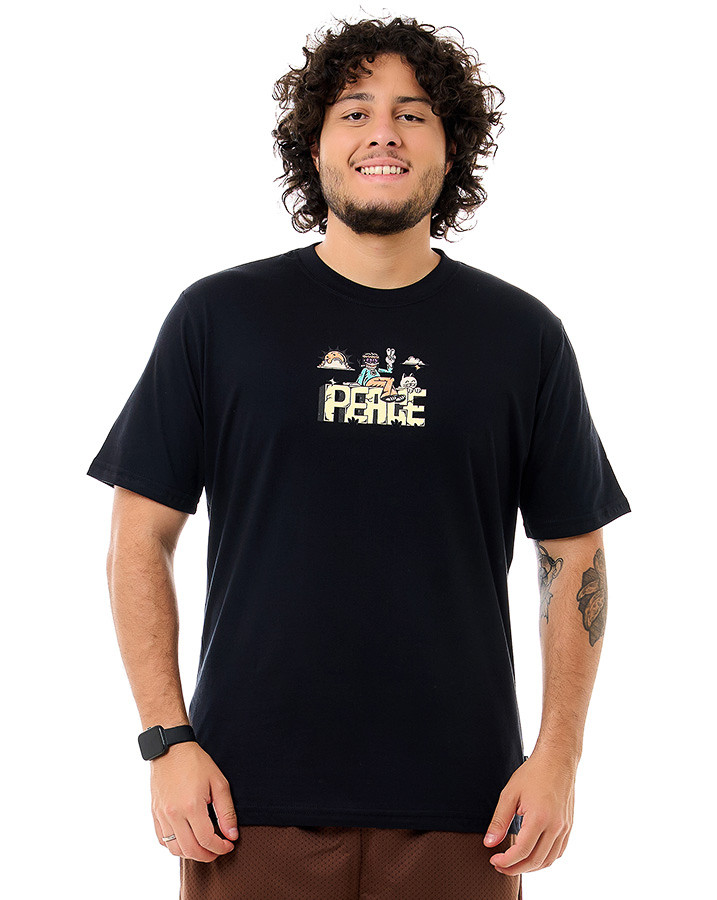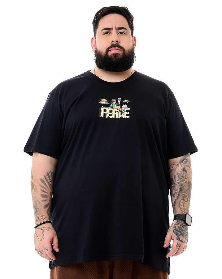 A Camiseta Classic Peace Preto Knulu traduz leveza e estilo com uma proposta visual que une simplicidade e expressividade. O design minimalista na frente contrasta com a arte central que incorpora elementos gráficos divertidos e urbanos, reforçando a identidade descontraída da marca.