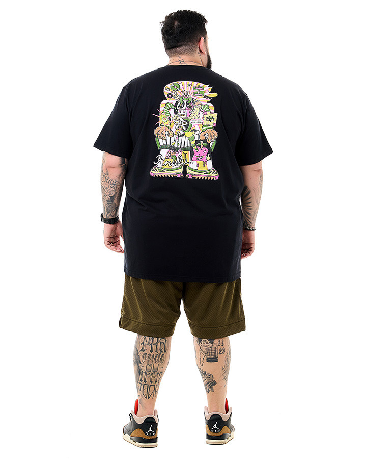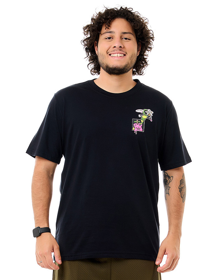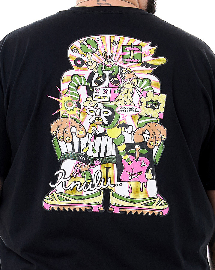 A Camiseta Classic Villain Preto Knulu aposta em um visual gráfico irreverente, com influência do universo dos quadrinhos underground. Com modelagem tradicional e gola careca, traz um caimento confortável e alinhado, ideal para compor produções casuais com personalidade.