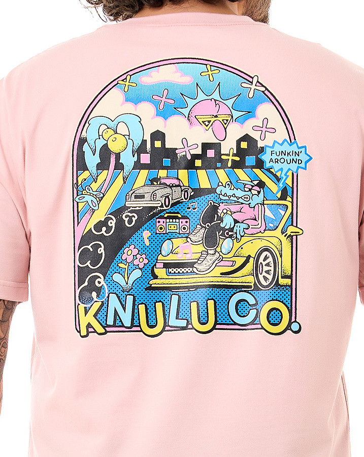 Confeccionada em malha de algodão, entrega toque macio e excelente respirabilidade, mantendo o conforto mesmo em dias quentes. A estampa nas costas traz ilustrações divertidas com estética retrô e street, enquanto o logo da Knulu aparece discretamente no peito, equilibrando ousadia e identidade.