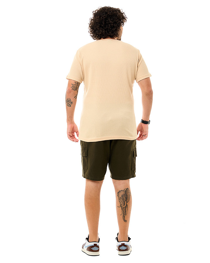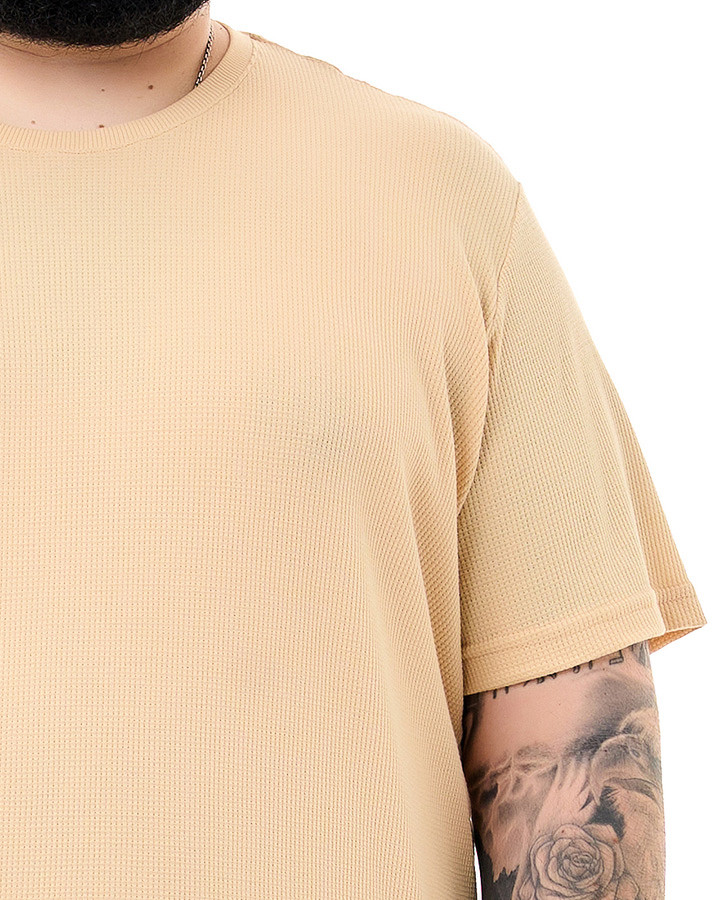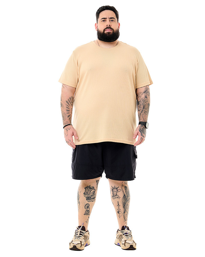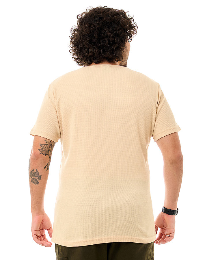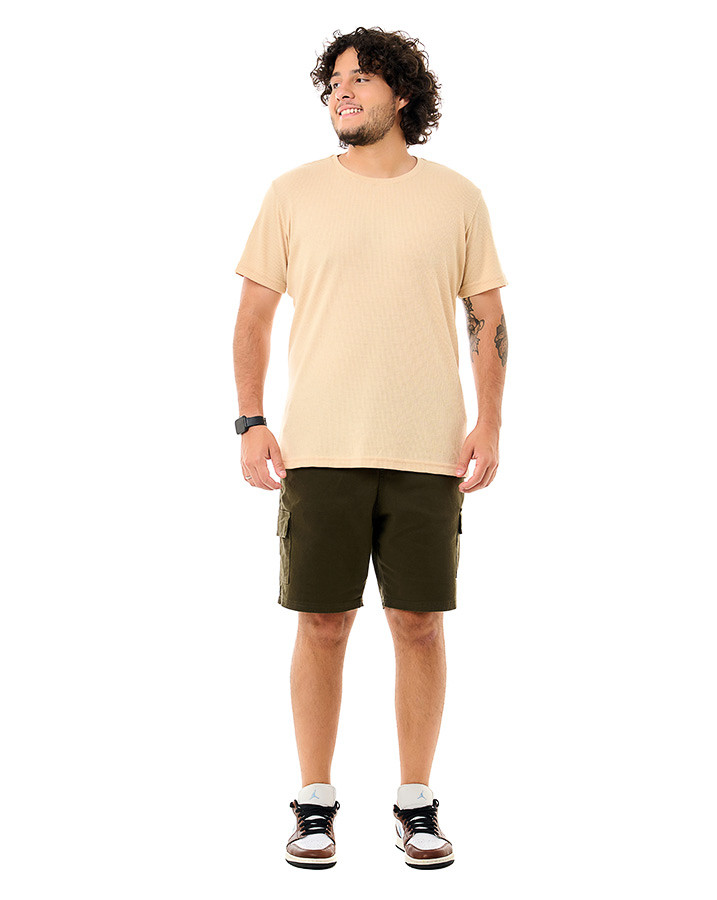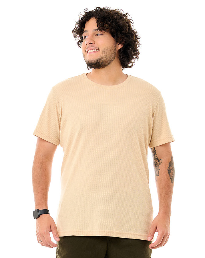 Com corte tradicional, gola careca e mangas curtas, esta peça garante versatilidade e conforto para qualquer ocasião casual. O tecido texturizado adiciona um toque exclusivo, enquanto o design clássico torna a camiseta perfeita para combinar com diferentes looks.