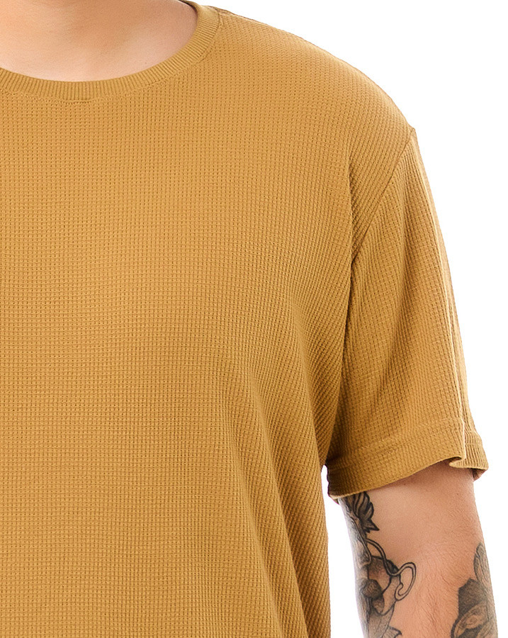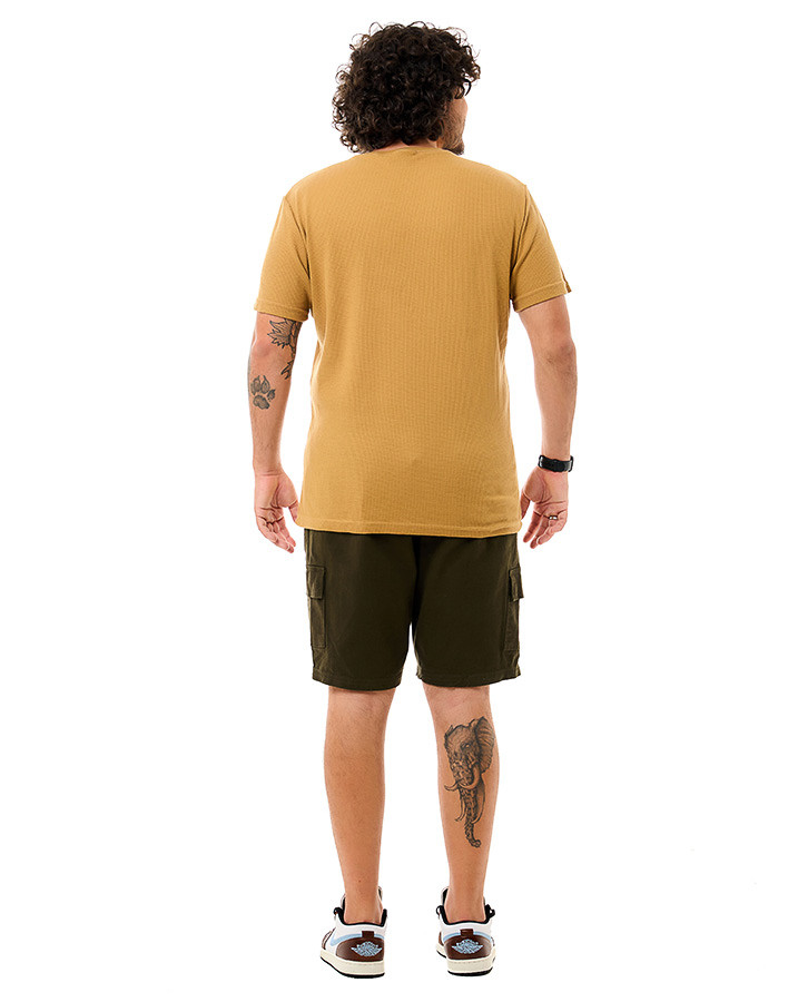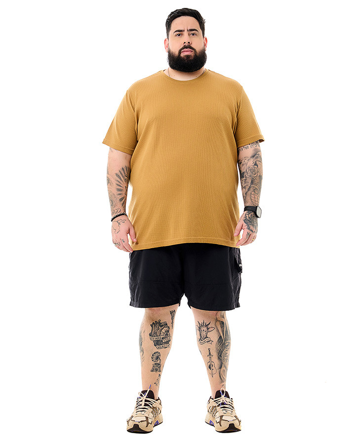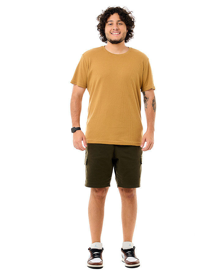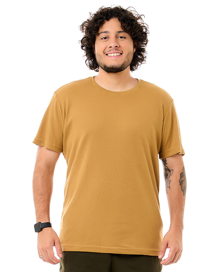 Com corte tradicional, gola careca e mangas curtas, esta peça garante versatilidade e conforto para qualquer ocasião casual. O tecido texturizado adiciona um toque exclusivo, enquanto o design clássico torna a camiseta perfeita para combinar com diferentes looks.