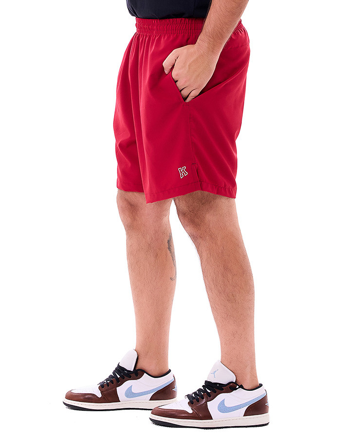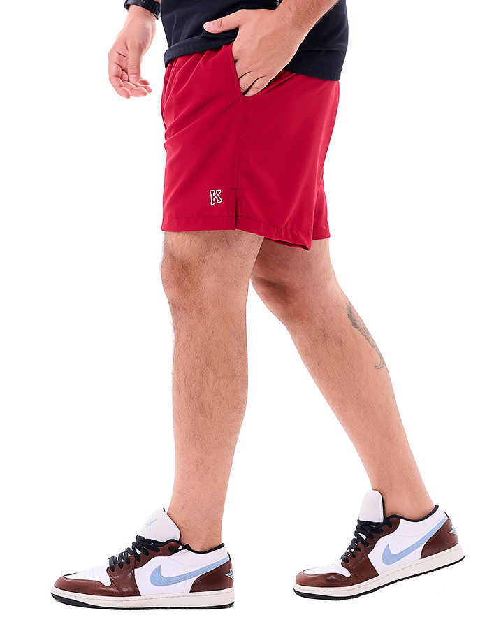 Short Sport Beach Vermelho Knulu: Leveza e funcionalidade em um só short. Confeccionado em microfibra premium, com 90% poliéster e 10% elastano, possui modelagem curta e recortes laterais que garantem liberdade de movimento. O cós elástico com ajuste interno proporciona um encaixe confortável, enquanto os bolsos laterais embutidos oferecem praticidade. O logo "K" estampado na perna esquerda reforça a identidade da peça, tornando-a perfeita para treinos ou momentos casuais.