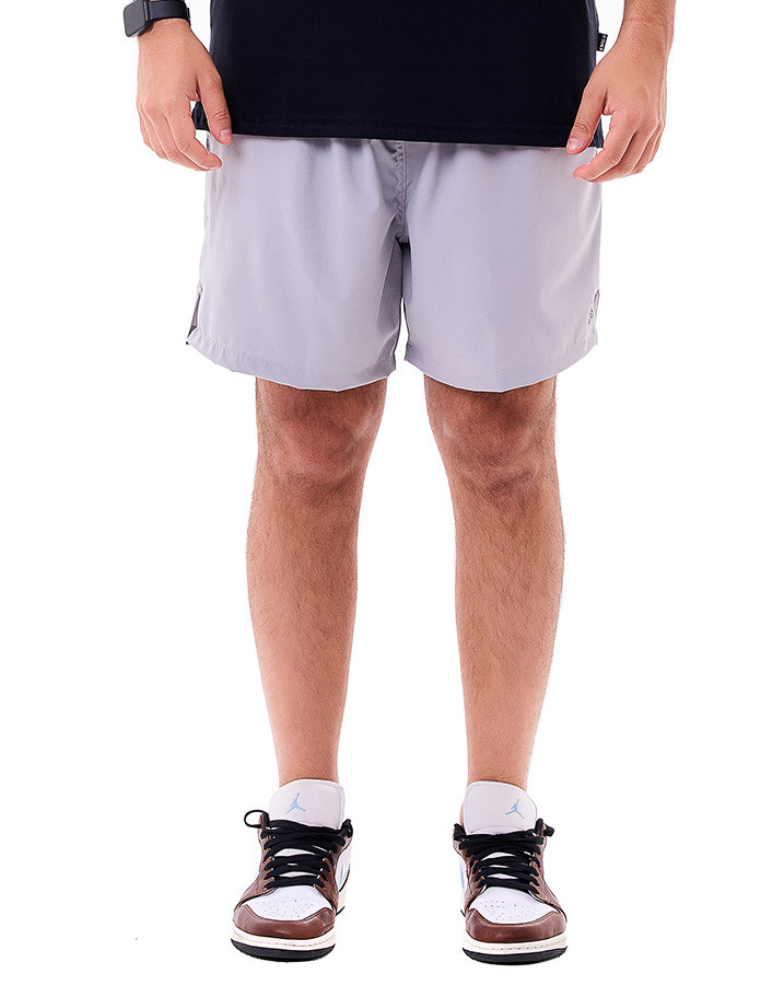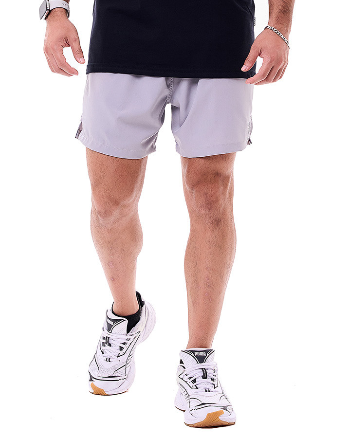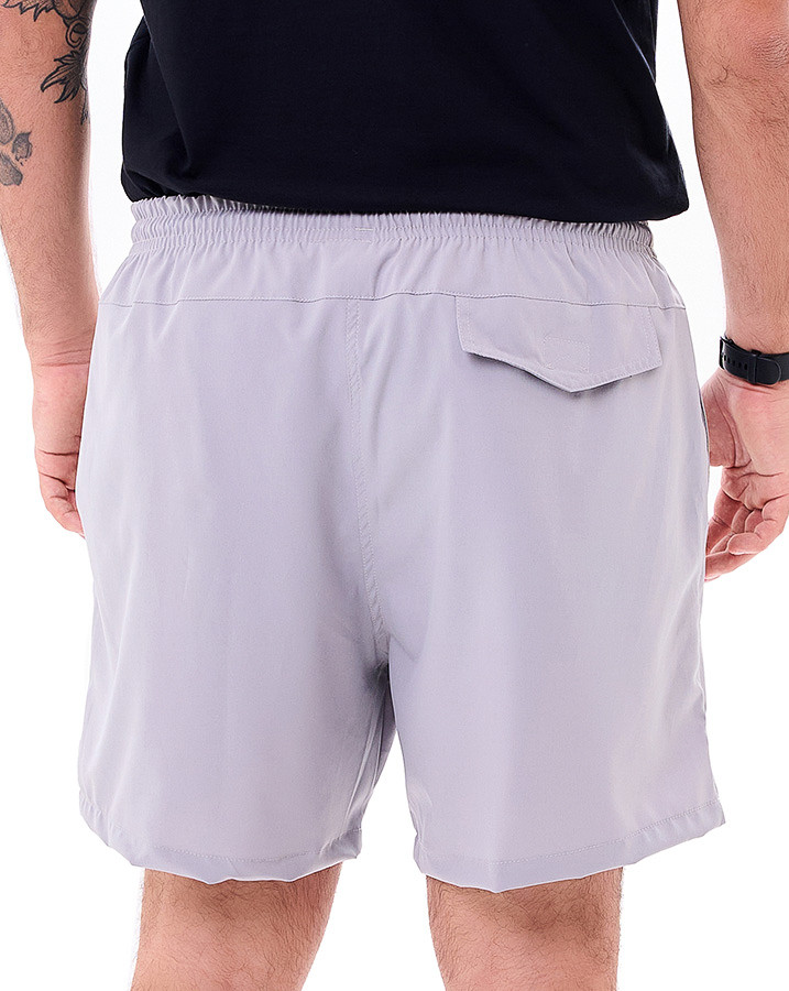Short Sport Beach Cinza Prata Knulu: Leveza e funcionalidade em um só short. Confeccionado em microfibra premium, com 90% poliéster e 10% elastano, possui modelagem curta e recortes laterais que garantem liberdade de movimento. O cós elástico com ajuste interno proporciona um encaixe confortável, enquanto os bolsos laterais embutidos oferecem praticidade. O logo "K" estampado na perna esquerda reforça a identidade da peça, tornando-a perfeita para treinos ou momentos casuais.