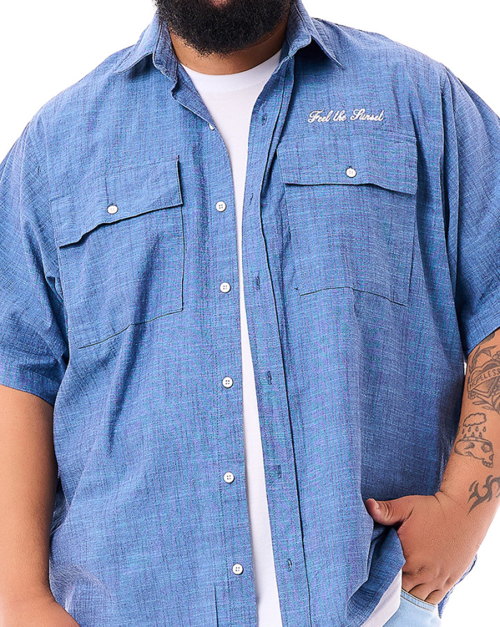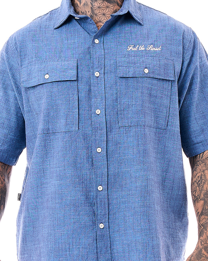 Confeccionada em tricoline de toque macio e estrutura leve, proporciona conforto no uso diário, boa respirabilidade e caimento natural, ideal para os dias mais quentes. O detalhe bordado acima do bolso frontal reforça a identidade da peça e acrescenta um toque exclusivo ao visual.